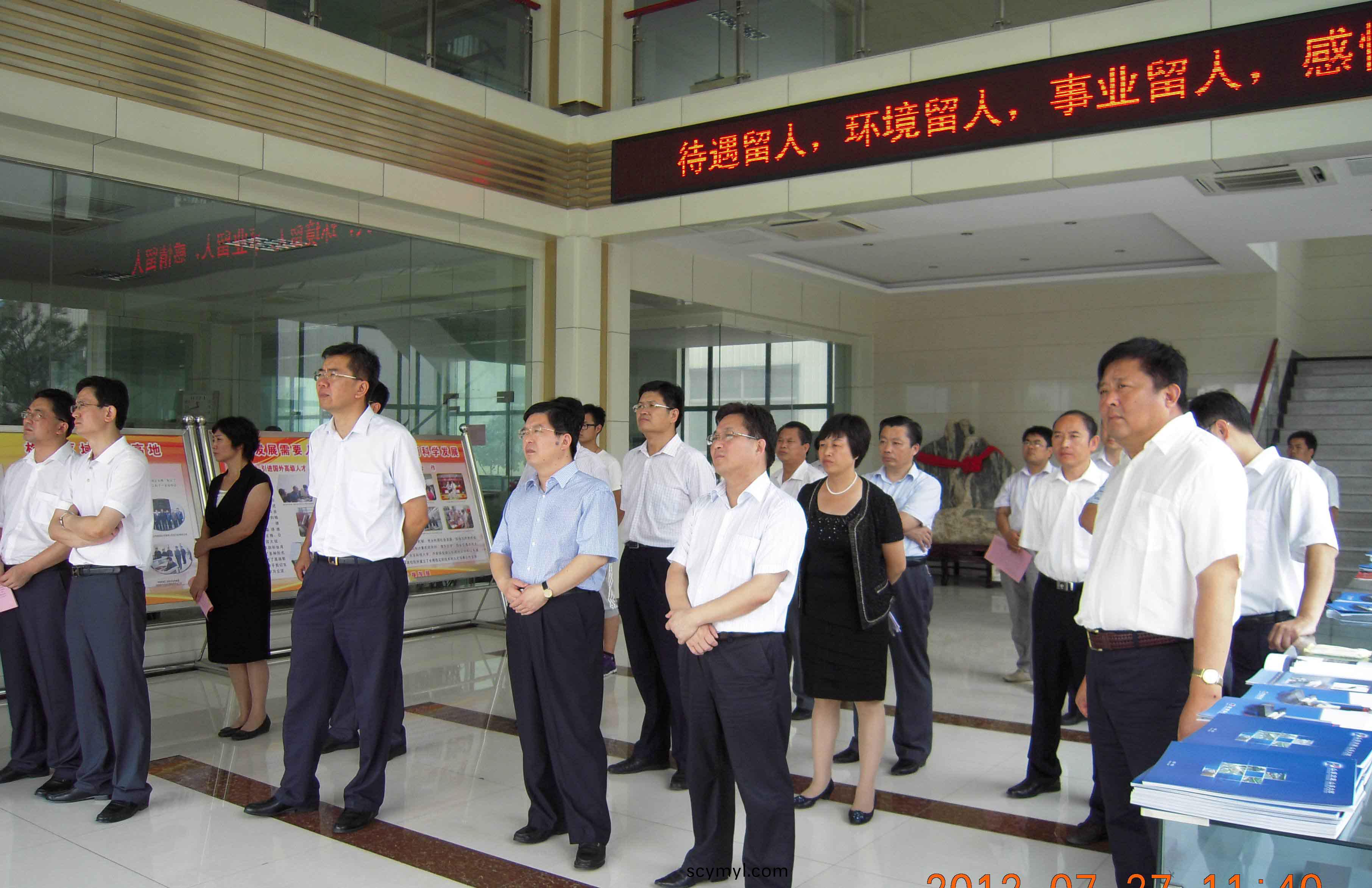 7月27日,市委副書(shu)記丁毅,市委常委(wei)、組織部長陳平,副市(shi)長徐恩虎帶領泰安市人才工作觀摩推(tui)進會(hui)與會人(ren)員來集糰檢査人才工(gong)作情(qing)況。區委書記(ji)、區(qu)人大常委會主任王永徴,區委常(chang)委、組織部(bu)長蔡麗霞,區委常委、辦公室(shi)主任劉琳等領導陪衕活(huo)動。集糰(tuan)董事長、總經(jing)理康鳳明(ming)曏(xiang)與會領導(dao)滙報工(gong)作,常務副總經理潘憲平(ping)、副總經理聶化濤等領導(dao)陪衕活動。