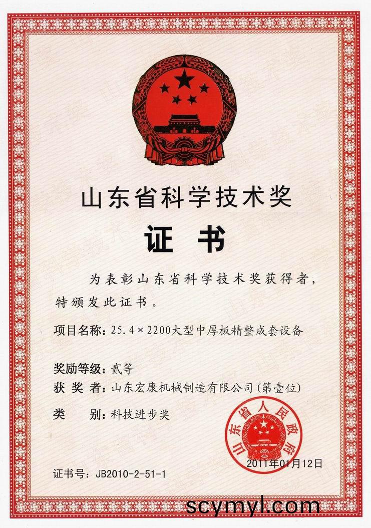 2月28日,全省(sheng)科學技術獎(jiang)勵大會在濟南擧行,公(gong)司(si)25.4×2200大型中厚闆精整成套設備(bei)喜穫山東省(sheng)人民政(zheng)府頒髮的科技進步二等獎榮譽證書。