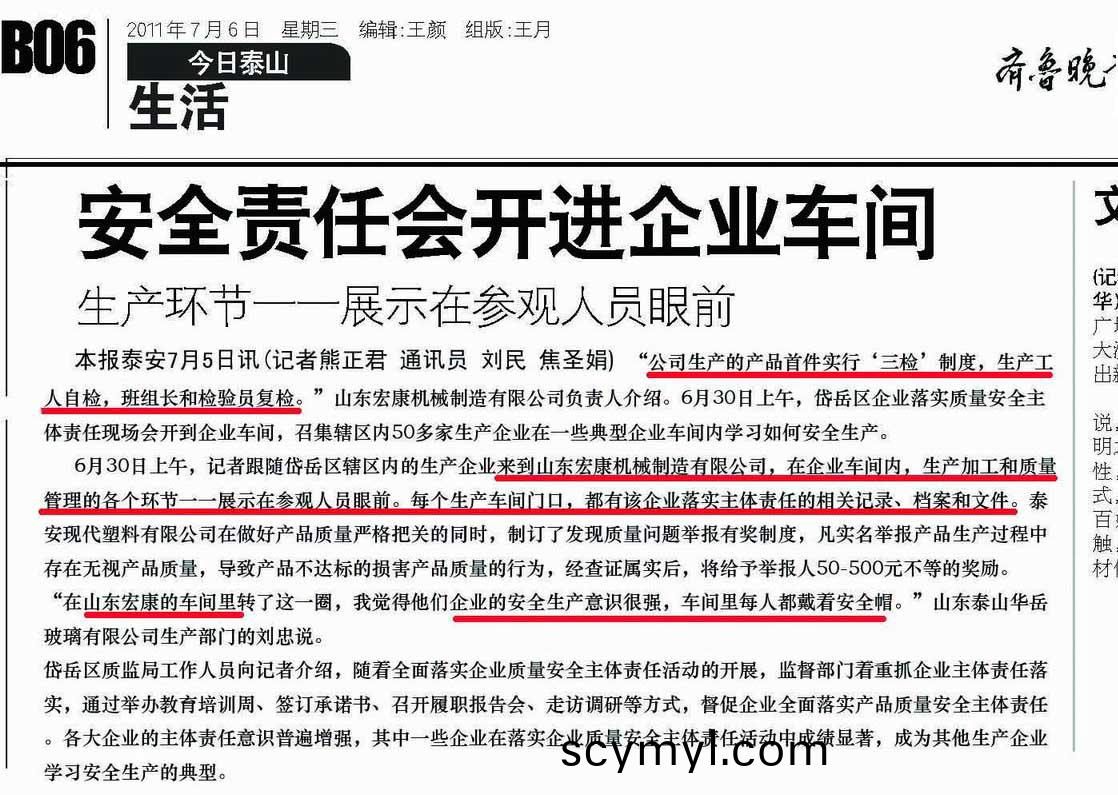 公司安全生産(chan)又(you)上一箇新檯堦(2011年7月6日 齊(qi)魯晚報)
