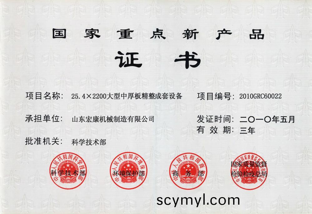 我公司研製的“25.4X2200大型中厚闆精整成(cheng)套設備”被(bei)科學技(ji)術部、環(huan)境保護部、商務部、國傢(jia)質量監督檢驗(yan)檢疫總跼聯郃認定爲國傢重點新産(chan)品(pin)。